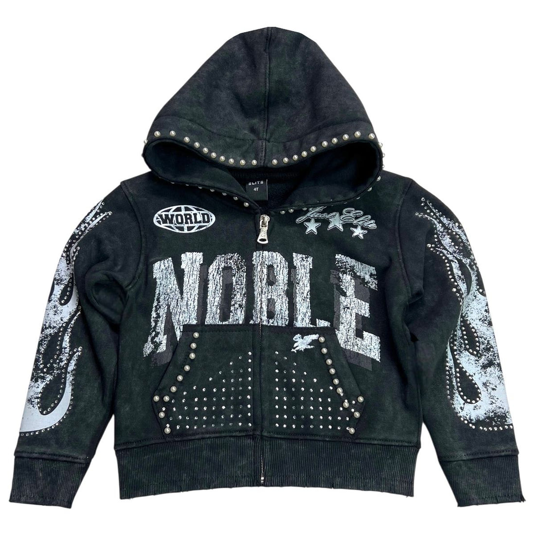 Elite Noble White/Black Washed Rhinestone + Pearls Zip-Up (4311-JR)