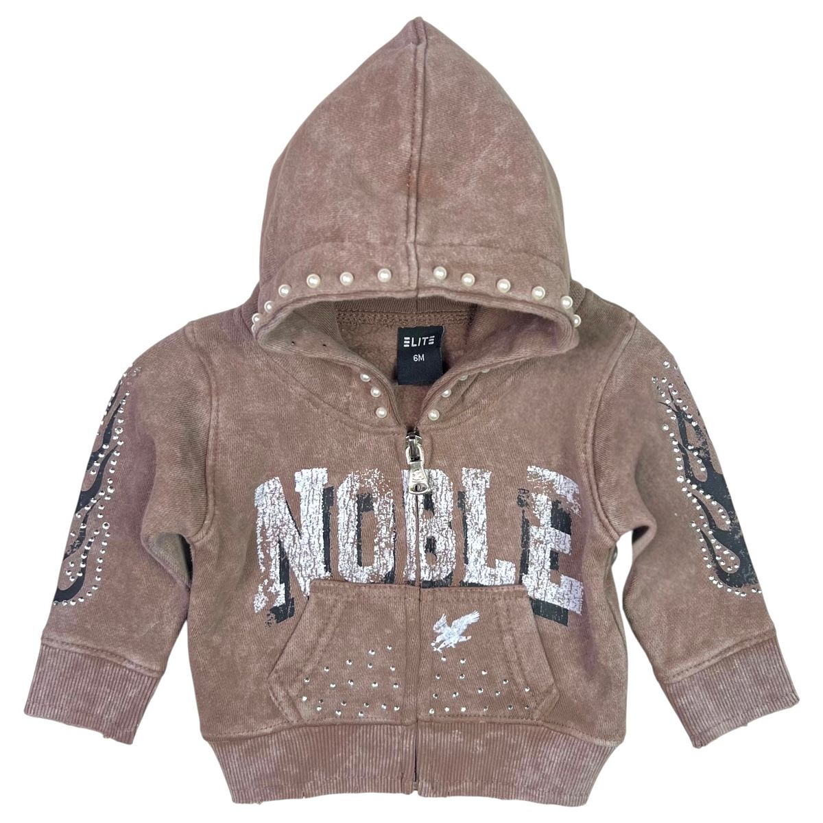 Elite Noble White/Taupe Washed Rhinestone + Pearls Zip-Up (153302)
