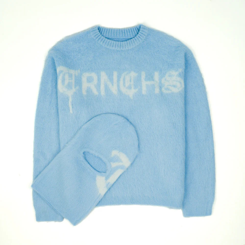 TRNCHS MOHAIR SWEATER Baby Blue / White